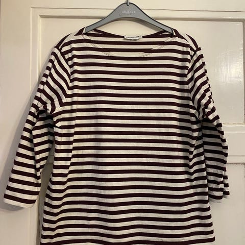 Hyväkuntoinen Marimekko paita/tunika/mekko. Kts. mitat, soveltuu käytettäväksi eri tavoin. Materiaali 60 % viskoosi, 40 % silkki. Helma pyöristetty sivusaumoja kohti. Edessä napitus. Koko XL