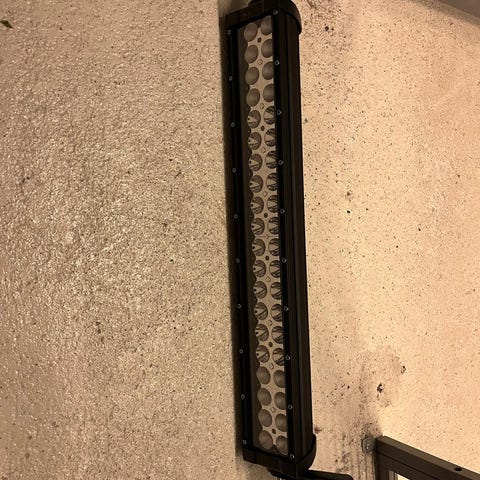 Mustan värinen 150 cm pitkä LED-valopalkki, jossa useita LED-valoja ja heijastimet valon tehokkuuden parantamiseksi. Valopalkki on valmistettu kestävästä materiaalista ja sen liitäntäkaapeli on näkyvissä. Soveltuu ajoneuvojen lisävaloksi.