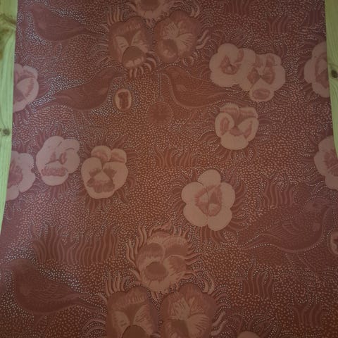 Sanderson vintage tapettia 70-luvulta. Kaksi rullaa, toinen avaamaton, toidesta otettu vain näytepala (parikymmentä senttiä, eli lähes täysi rulla).
