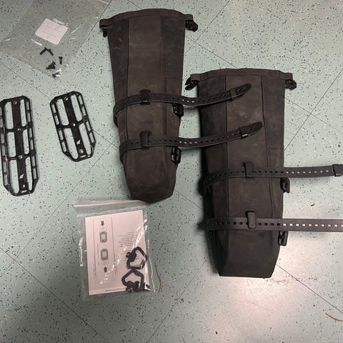 Kunto erinomainen, on ollut n. kuukauden reissut kiinni pyörässä ja pesty reissujen jälkeen. Nykyisessä setupissa tämä jäi vaille käyttöä ja siksi myyntiin. Pitää vettä 100%, mukaan 2kpl Tailfinin strappeja pituudessa 30cm