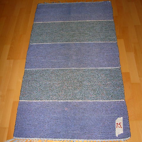 - sinisävyinen räsymatto, imuroitu. Ihan siisti minun mielestä. Voi toki pestä.