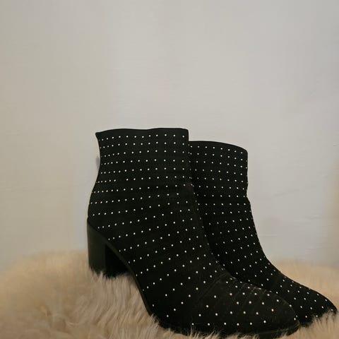 Mustat nahkaiset Dkny nilkkurit, koko 39. Sisä sivulla vetuketjut sekä nepparilla kiinnittyvä nilkan ympäri menevä remmi. Kiilakantaiset, korko 6-7cm. Hyväkuntoiset. Ostettu Stockalta.