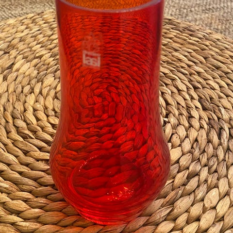 Todella upea massiivinen vihreä lucullus maljakko, suunnittelija Nanny Still, valmistaja riihimäen lasi Oy 1967-68,mitat 30cmX12cmX12cm paino noin 3,5kg. Ei virheetön,pientä käytön jälkeä ja yks riksu(kuvattu) ja tietty siirtelyjälkiä pohjassa.140€/tarjoa