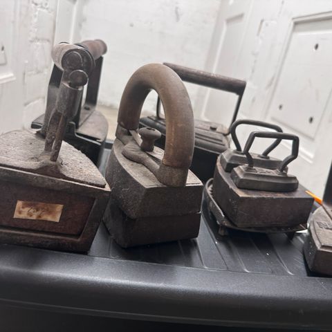 Puuta sisällä. Toiset ehjät, toisesta puuttuu yksi pala ja nauha katkennut.