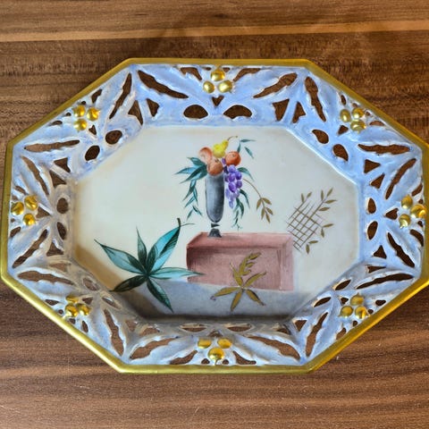 Hedelmäkuvioinen Hutschenreuther Selb Bavaria vati. Halkaisija 23,5 cm. Nouto Katajanokalta tai Tori Diilinä.