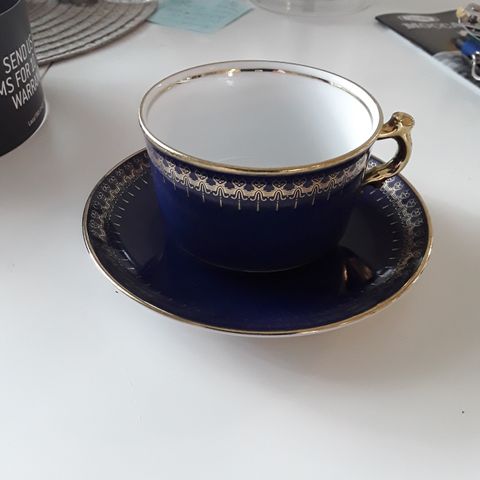 Kaunis koboltti sininen. Kuppi ' ja 2 lautasta.