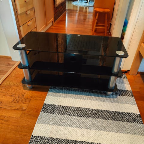 Lasiovellinen matala kaappi/ TV-taso, kaareva etureuna, siisti ja hyväkuntoinen, ei jälkiä.
