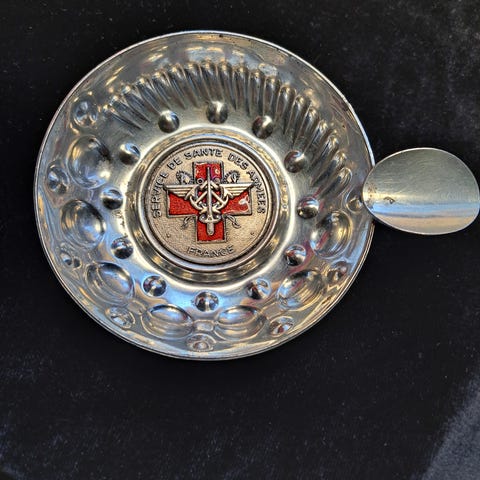 Kuvien mukainen hieno rintamalla puhdetyönä tehty tuhkakuppi. Aihiona on ollut 3 tuuman (75 mm) tykin hylsy. Jalkoina tyhjät kiväärin hylsyt. Keskellä teline tulitikkulaatikkoa varten josta voi ottaa tikun ja raapaista tulen yhdellä kädellä. Kokonaiskorkeus 10 cm. ja tikkulaatikon kanssa 15 cm. Tästä hieno esine äijäluolaan tai keräilijän vitriiniin. Myös tarjouksia kuunnellaan.