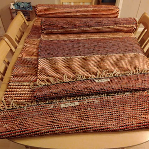 Kaikki matot ovat palttinaa. Matoissa kulkee yksi trikookude ja kaksi perinteitä kunnioittavaa räsykudetta. Matot ovat siis ”uusia” mutta tehty käytetyistä materiaaleista, jolloin tulee huomioida, että vaikka kuteet ovat pesty, ne ovat saattaneet olla esimerkiksi lemmikkitaloudessa ennen päätymistään perinteiseksi kierrätyskäsityöksi. Mattojen mitat ovat noin mittoja, ja mitattu ilman hapsuja. Tiiviisti ja napakasti kudottu.
