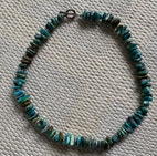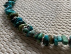 Kauniit turkoosihelmet, pituus n. 43 cm, lukko luultavimmin korumetallia.