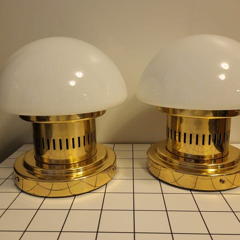 Orno/ Klaus Michalik Bau valaisimia 2 kpl. Valaisimen korkeus 39 cm, ja lasisen kuvun halkaisija noin 28 cm. Lähettääkin voin, mutta postikulut ovat aika suuret, joten mieluummin nouto. Hinta parilta.