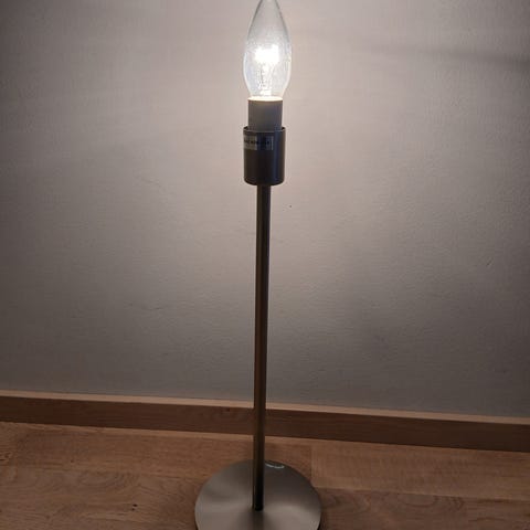 Työvalaisin, valkoinen, säädettävä varsi, sopii työpöydän valaistukseen. Valaisin on valmistettu metallista ja muovista, ja siinä on pyöreä jalusta. Virtajohto ja lamppu mukana. Pysyy tukevasti pystyssä.