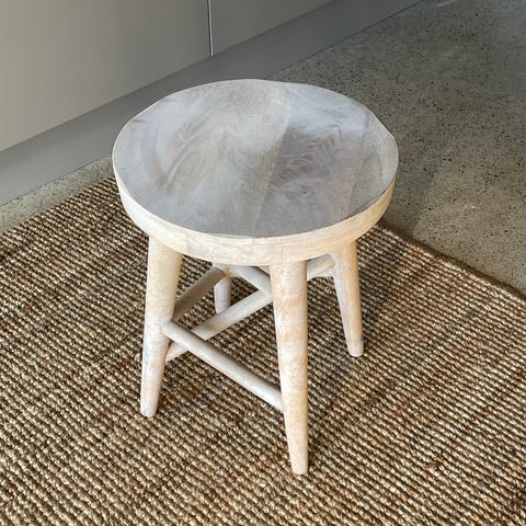 Kolme jakkaraa/tuolia, istuinosa puuta ja jalat metallia. Jäykkätekoiset, ei heilu. Puuosissa kulumaa, yhdessä enemmän. Voisi saada pois hiomalla ja lakkaamalla. Hinta 20e/kpl tai 50e/3kpl.