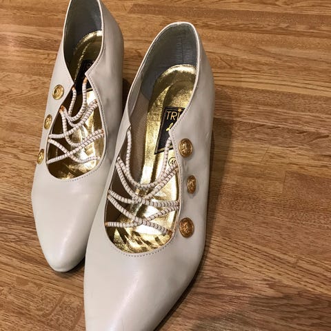Hopeiset korkokengät. Kerran käytetty wanhojen tansseissa🙂 Korko 5,5 cm. Normaali kengän kokoni on 38-39.