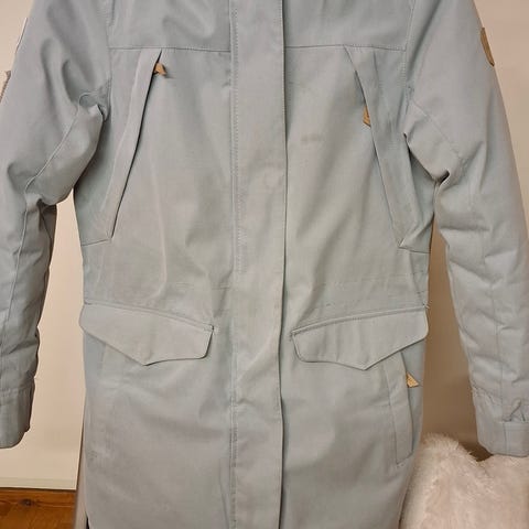 Takin päällyskangas on kierrätettyä polyesteriä sekä orgaanista puuvillaa (65%/35%), vuori 100% polyesteria. Takki on kosteussuojattu ympäristöystävällisellä PFC-vapaalla vedenhylkivyyskäsittelyllä.