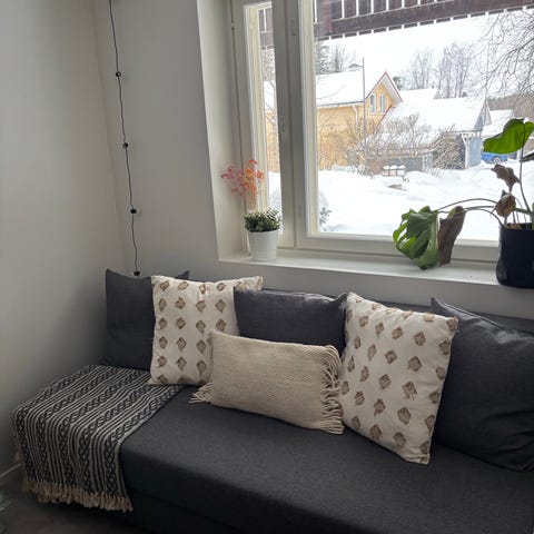 Myydään uutta vastaava Ikean vuodesohva (Asarum), sekä sohvatyynyt.
