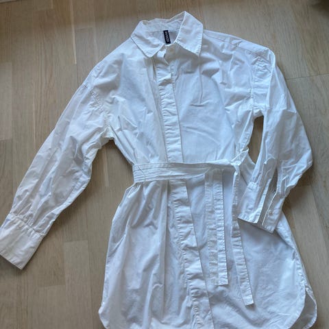 H&M paitamekko, koko S, oversize malli. Materiaalilappu leikattu, mutta arvelen olevan viskoosia.