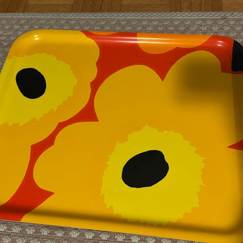 Iso ja näyttävä Marimekon tarjotin. Halkaisija 47 cm.