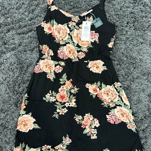 ONLYn kukallinen musta kesämekko, pitsisomisteet takana ja napit. Uusi, koko 42.