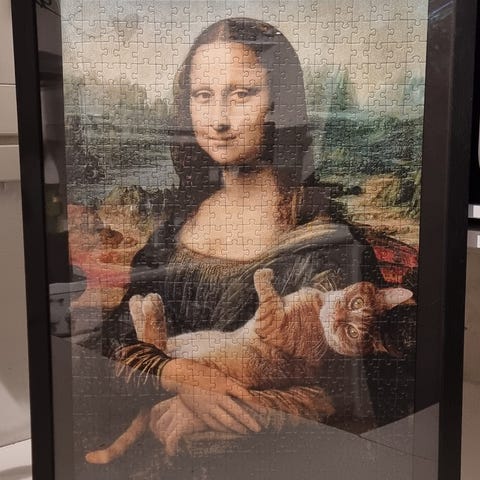 Palapelitaulu "Mona Lisa" kehystettynä. Koko 35 x 50 cm (kehys 45 x 55 cm).