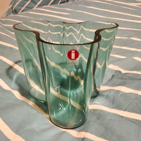 Käyttämätön Aalto malja, vihreä, leveys pitkä sivu 19,5 cm, korkeus 5 cm. Myynnissä 2 kpl, 50€/kpl. Nouto Kauniainen.