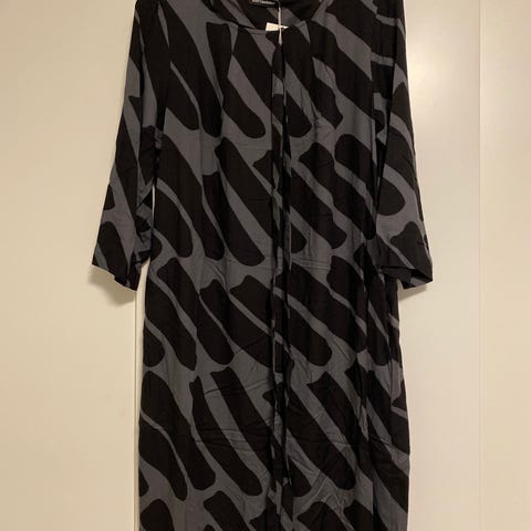 Tummanvihreä-vaaleanpunainen taskumekko vyötärökiristyksellä