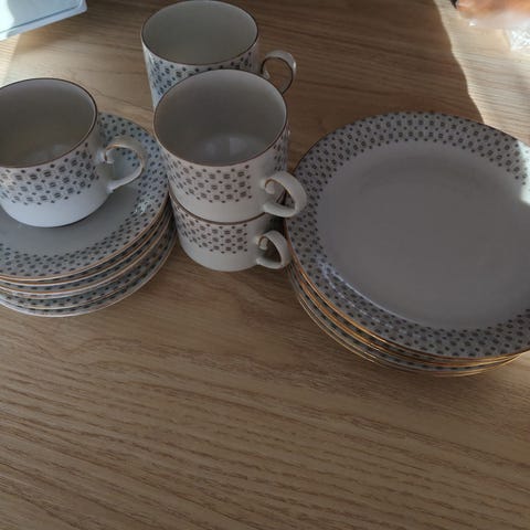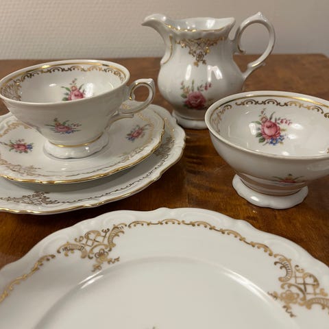 Kultareunainen kukka-astiasto Winterling Röslau Bavaria Vintage Kahvi astiasto kultaus uuden kuntoinen.