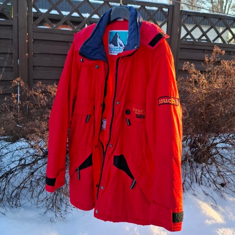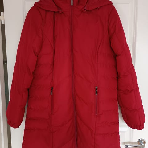 Punainen naisten talvitakki, koko M. Takki on suunniteltu tarjoamaan lämpöä kylmillä säillä. Siinä on pitkä hiha ja hupullinen malli, joka suojaa hyvin tuulelta ja kylmältä. Merrell. takki, toppatakki