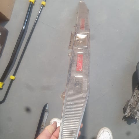 Alkuperäiset muovihelmat farmariin. Ei halkeamia. Toisesta puuttuu kumilärpäke.