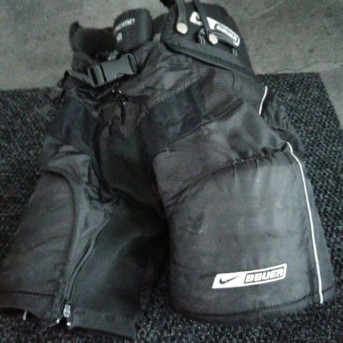 Kohtalaisessa kunnossa olevat jääkiekkohousut. Koko Youth L
