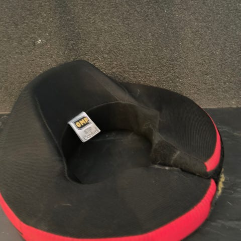 Punainen lasten karting-puku, koossa 98. Soveltuu noin 5-8 vuotiaalle. Puvussa on valkoiset yksityiskohdat olkapäillä ja hihansuissa.