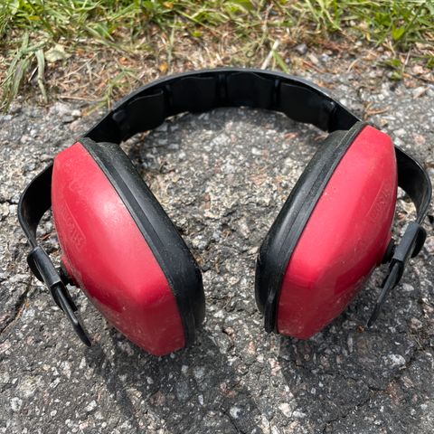 Käyttökelpoiset kuulosuojaimet joista irronnut tukikaaresta pintaverhous pään yläpuolelta, katso kuva.
