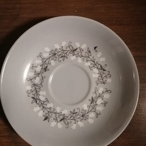 Valitettavasti huomasin vasta, että kahdessa kupissa on pienet halkeamat (viimeiset kuvat). Lautaset niissäkin hyväkuntoisia.