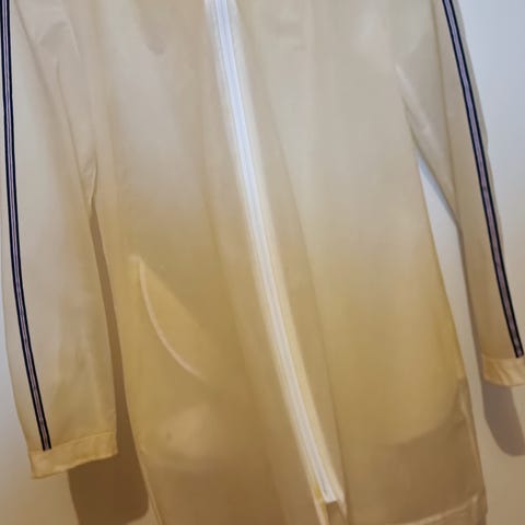Punainen friday sadetakki. On käytetty, mutta en löytänyt mitään vikaa. S kooksi aika väljä. Kuvan henkilö on pitkä 158 cm ja keskimäärin käyttää M koon vaatteita. Eli jos on S kokoinen henkilö, menee takin alle hyvin paksumpikin vaate. Takissa useampi tasku.
