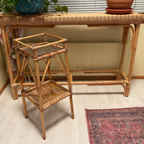 Vintage rottinki pyöreä kahvipöytä kukkapöytä