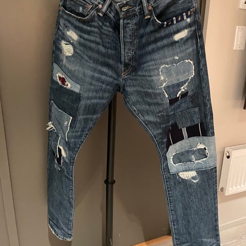 Koko w32/L34, vyötärön leveys 40-41cm, pituus haarasaumasta alas 83cm