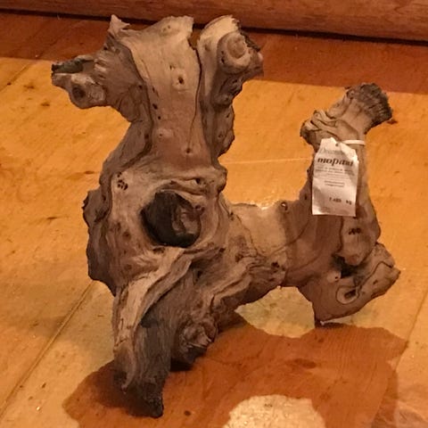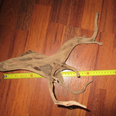 Luonnollinen puunoksa, joka soveltuu sisustuselementiksi tai koristeeksi. Oksa on luonnonvärinen ja siinä on useita haaroja, mikä antaa sille orgaanisen muodon. Materiaali on puu, ja oksan pituus on suuri, mikä mahdollistaa monipuolisen käytön akvaario/terraario/kodin sisustuksessa tai askartelussa.
