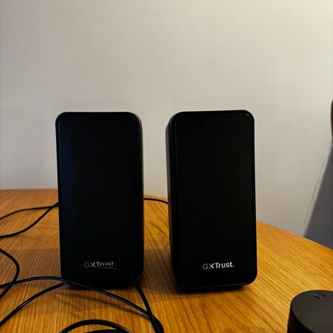 Musta/harmaa Trust- kaiutinsarja subbarilla.
