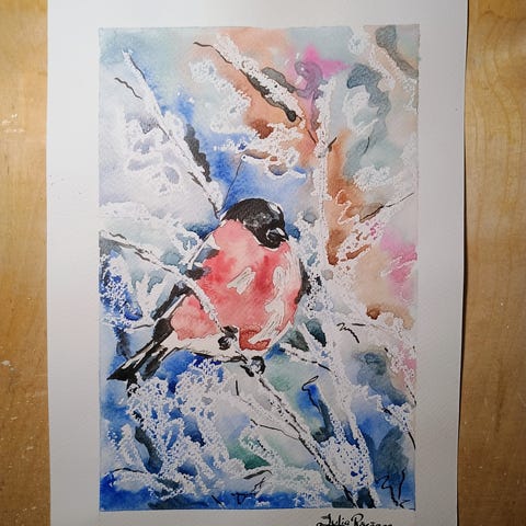 Uusi akvarelli sekateknikka maalaus paksulle maalaus paperille. Koko A4.