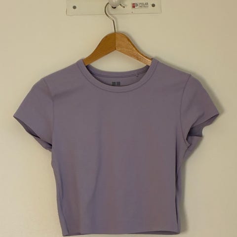 Uniqlon maastonvihreä cropattu t-paita urheiluun.