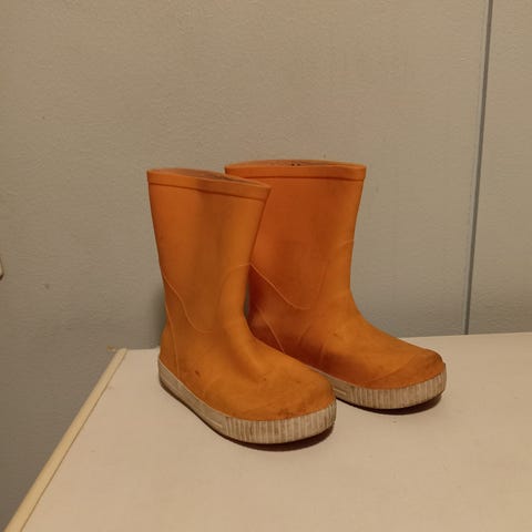 Lasten kumisaappaat koko 31, toisessa kengässä pieni murtuma varressa
