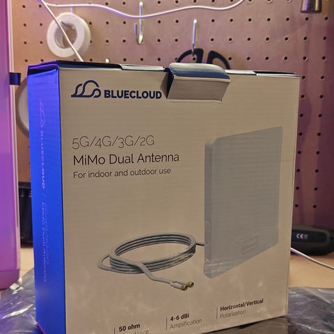 Uusi, ei kytketty kun verkkoyhtiön vaihdolla asia korjaantui. Suunta-antenni kiinnikkeineen.