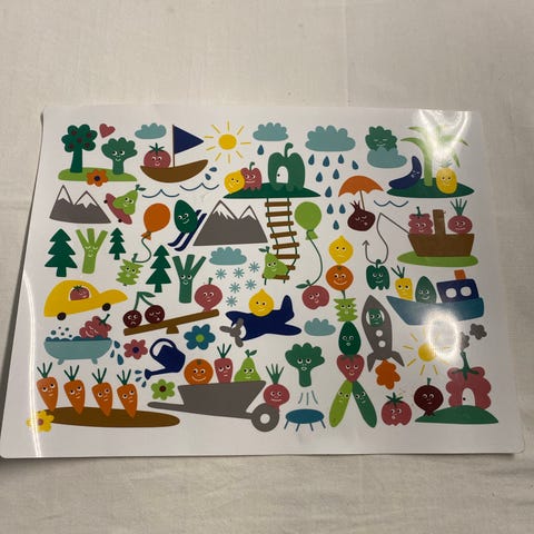 Piirrustus,askartelu,ruokailu yms. tabletit/alustat/kuvat. Laminoitu,helppo puhdistaa. Koko A4.