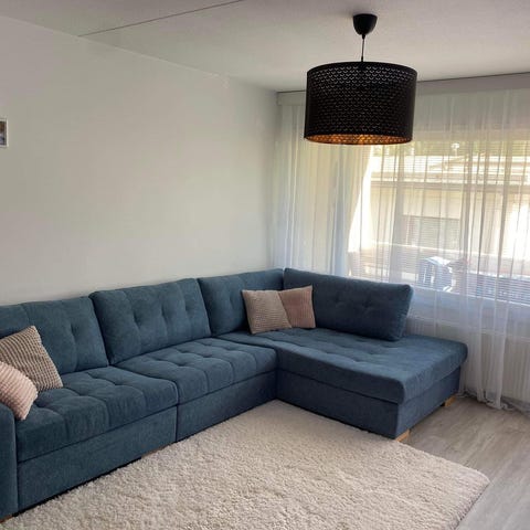 Mukaan kuuluu lisäksi vielä kolme sohvan väristä sohvatyynyä.