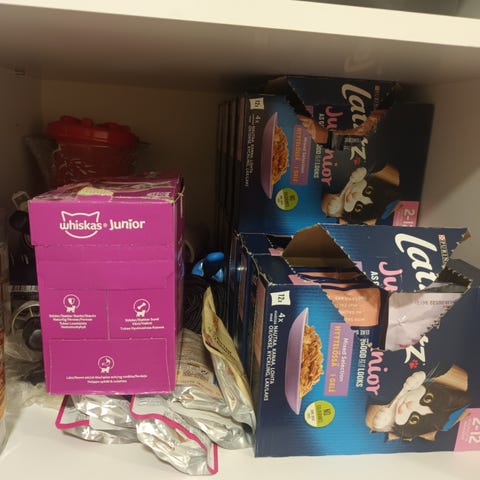 Kissani on allerginen punaiselle lihalle, joten punaiset pussit jäävät käyttämättä. Latz hyytelössä, +7v. Kaikissa päiväys 2027.