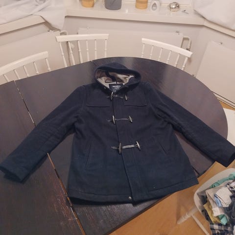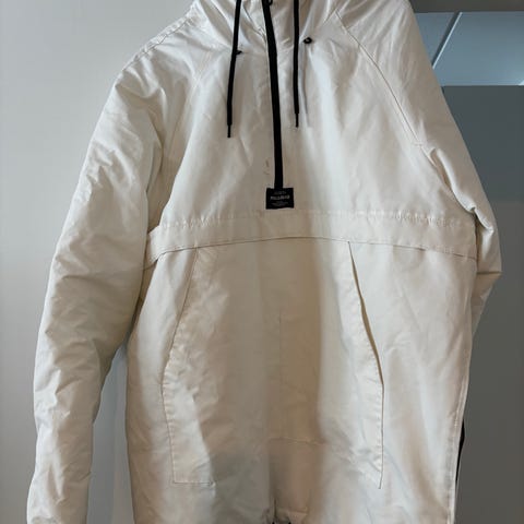Tuulipuvun kaltainen kevyt takki. Itselle mahtuu päälle (olen 188/103), mutta ehkä hiukan kiristää jostakin kohdasta. Menköön siis eteenpäin.