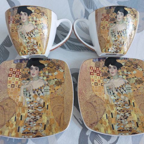 Gustav Klimt koristelautanen, halkaisija 22 cm, valmistettu posliinista. Lautanen esittää taiteilija Gustav Klimtin tyyliin sopivaa kuvitusta. Sopii koriste-esineeksi tai tarjoiluun.
