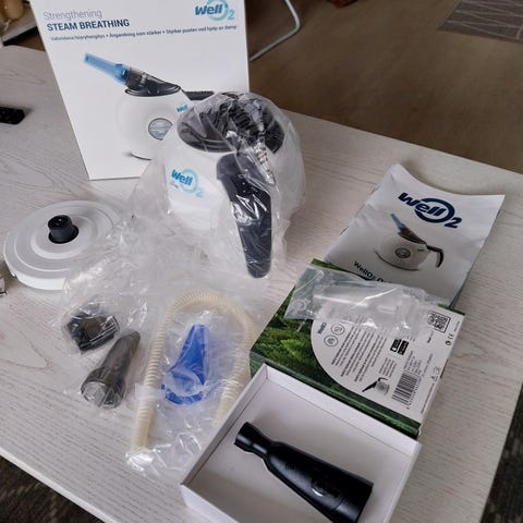 Myydään keväällä uutena ostettu hengitysharjoitteluun tarkoitettu laite. Laitteelle on tehty alkupuhdistus ohjeen mukaan, mutta ei ole ollut käytössä kertaakaan. Suukappaleet (x3) ovat avaamattomissa pusseissa. Mukana saa myös laitteen oman laukun sekä laitteelle sopivan menthol tabletti pakkauksen. Läheskään kaikissa myyntiversioissa ei ole näitä mukana.