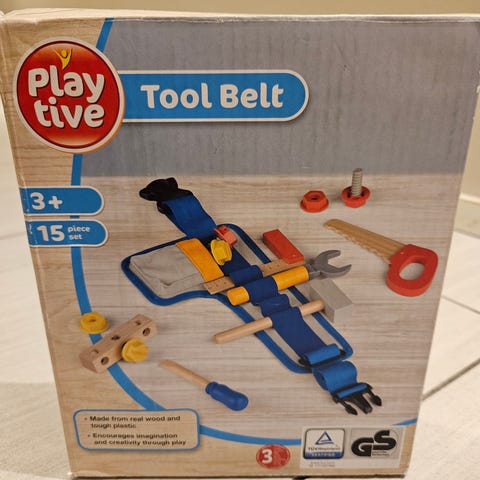 Oikea pikkurakentajan uniformu! Työkalujen lisäksi mukana tulee myös tyylikäs rakentajan liivi. Liivi on sivuilta hieman säädettävissä tarrakiinnityksen avulla. Pakkauksessa on paljon työkaluja, mukaan lukien paristokäyttöinen ruuviväännin.