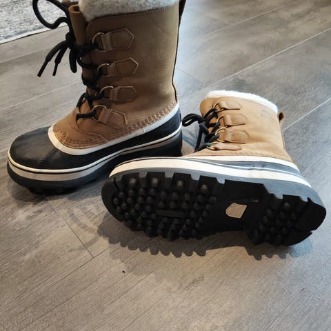 Erittäin lämpimät Sorel saappaat. Koko 38 2/3, pienehkö malli. Toisen saappaan karvareunuksen neppari rikki, ei vaikuta käyttöön. Kissatalous.